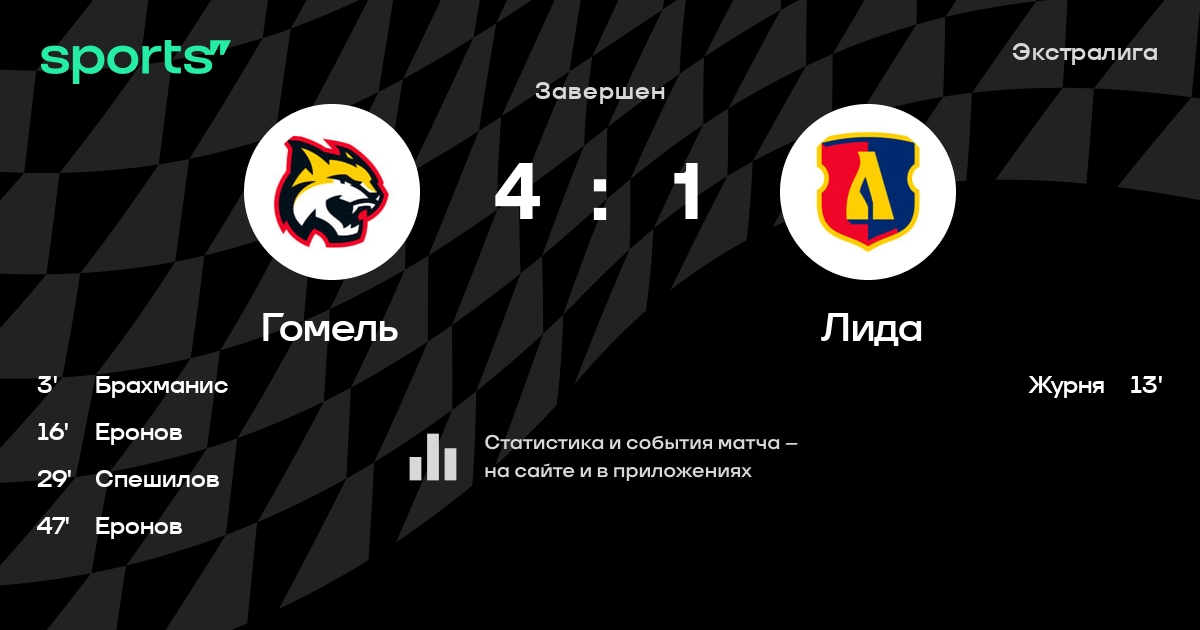 В прошедшем матче в рамках турнира Экстралига состоялась встреча команд Гомель - Лида в городе Гомель (Беларусь) на стадионе Ледовый дворец Гомель (вместимость - 2700)
