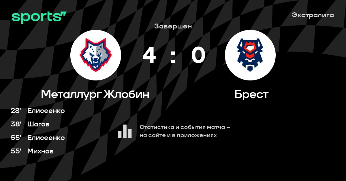 В прошедшем матче в рамках турнира Экстралига состоялась встреча команд Металлург Жлобин - Брест в городе Жлобин (Беларусь) на стадионе Ледовый дворец Металлург (вместимость - 2018)