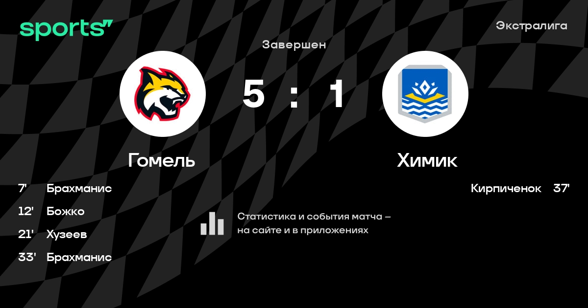 В прошедшем матче в рамках турнира Экстралига состоялась встреча команд Гомель - Химик в городе Гомель (Беларусь) на стадионе Ледовый дворец Гомель (вместимость - 2700)