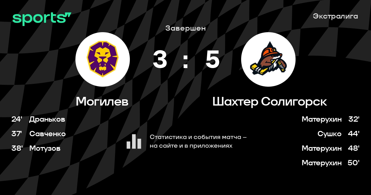 В прошедшем матче в рамках турнира Экстралига состоялась встреча команд Могилев - Шахтер Солигорск в городе Могилев (Беларусь) на стадионе Ледовый дворец спорта Могилев (вместимость - 3048)