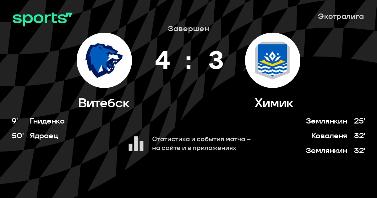 В прошедшем матче в рамках турнира Экстралига состоялась встреча команд Витебск - Химик в городе Витебск (Беларусь) на стадионе Витебский дворец спорта (вместимость - 2000)