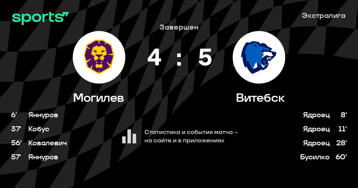 В прошедшем матче в рамках турнира Экстралига состоялась встреча команд Могилев - Витебск в городе Могилев (Беларусь) на стадионе Ледовый дворец спорта Могилев (вместимость - 3048)