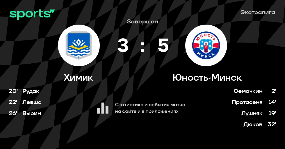 В прошедшем матче в рамках турнира Экстралига состоялась встреча команд Химик - Юность-Минск в городе Новополоцк (Беларусь) на стадионе Дворец культуры и спорта (вместимость - 1200)