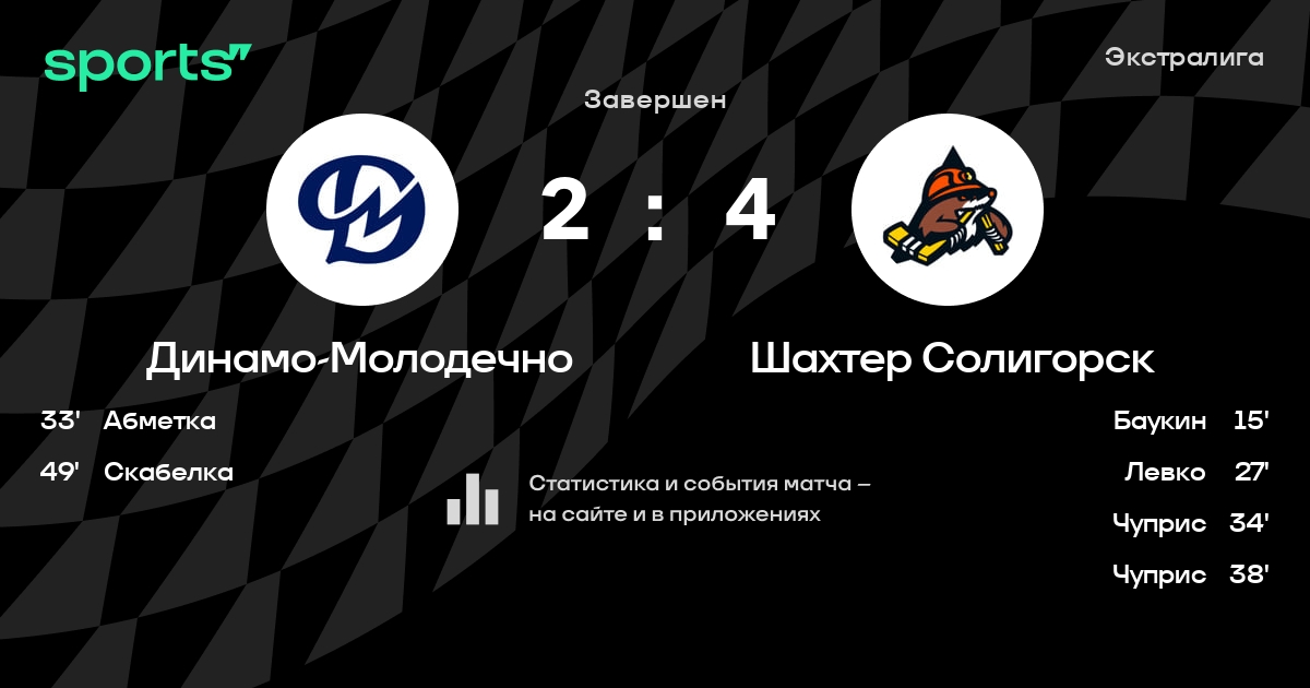 В прошедшем матче в рамках турнира Экстралига состоялась встреча команд Динамо-Молодечно - Шахтер Солигорск в городе Молодечно (Беларусь) на стадионе Ледовый дворец Молодечно (вместимость - 2000)