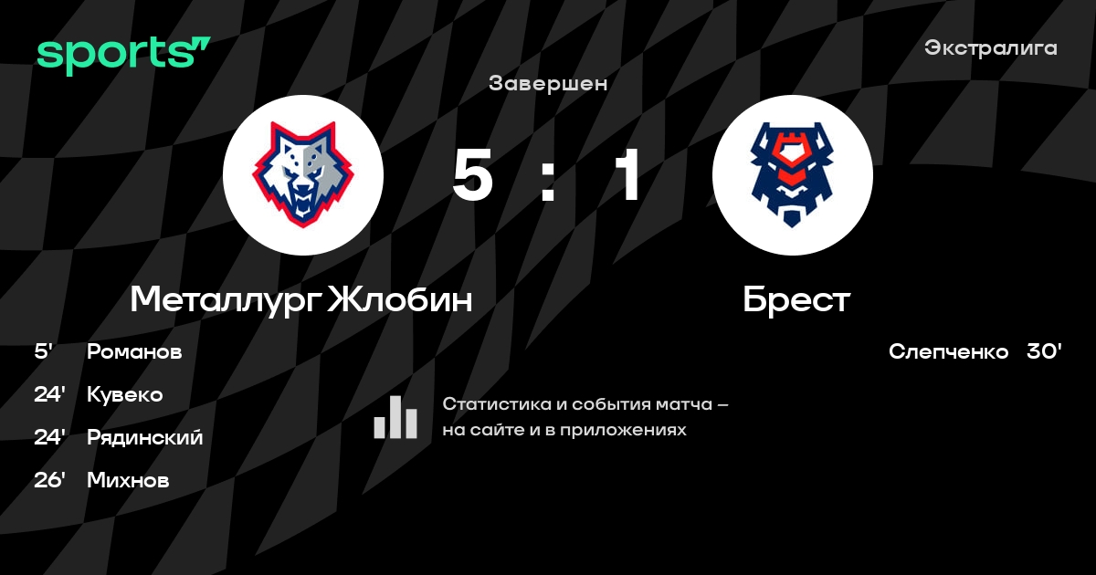 В прошедшем матче в рамках турнира Экстралига состоялась встреча команд Металлург Жлобин - Брест в городе Жлобин (Беларусь) на стадионе Ледовый дворец Металлург (вместимость - 2018)