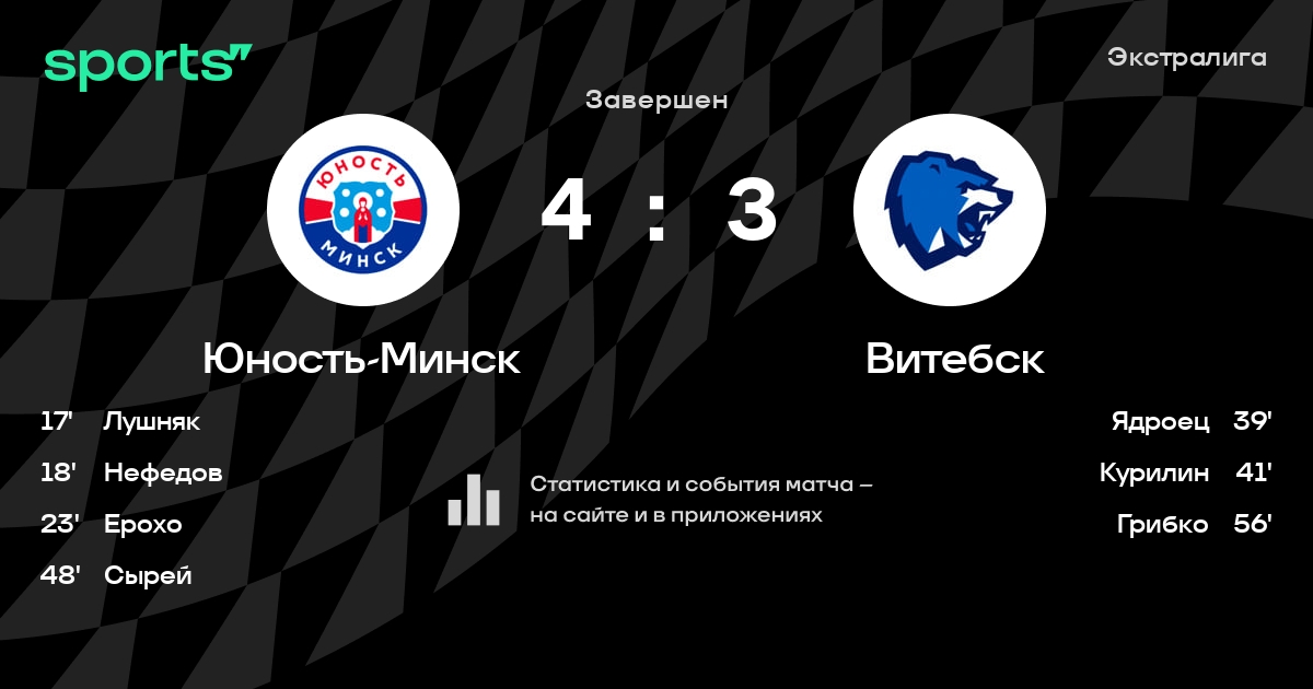 В прошедшем матче в рамках турнира Экстралига состоялась встреча команд Юность-Минск - Витебск в городе Минск (Беларусь) на стадионе Чижовка-Арена (вместимость - 9487)