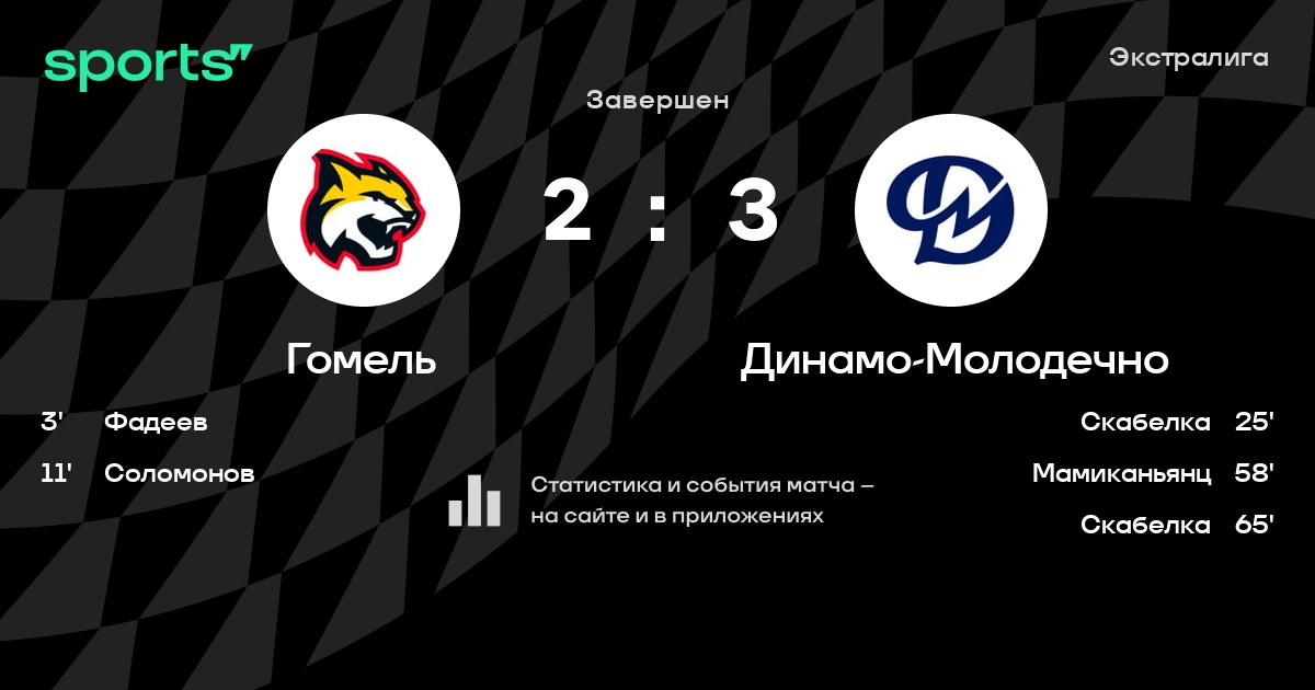 В прошедшем матче в рамках турнира Экстралига состоялась встреча команд Гомель - Динамо-Молодечно в городе Гомель (Беларусь) на стадионе Ледовый дворец Гомель (вместимость - 2700)