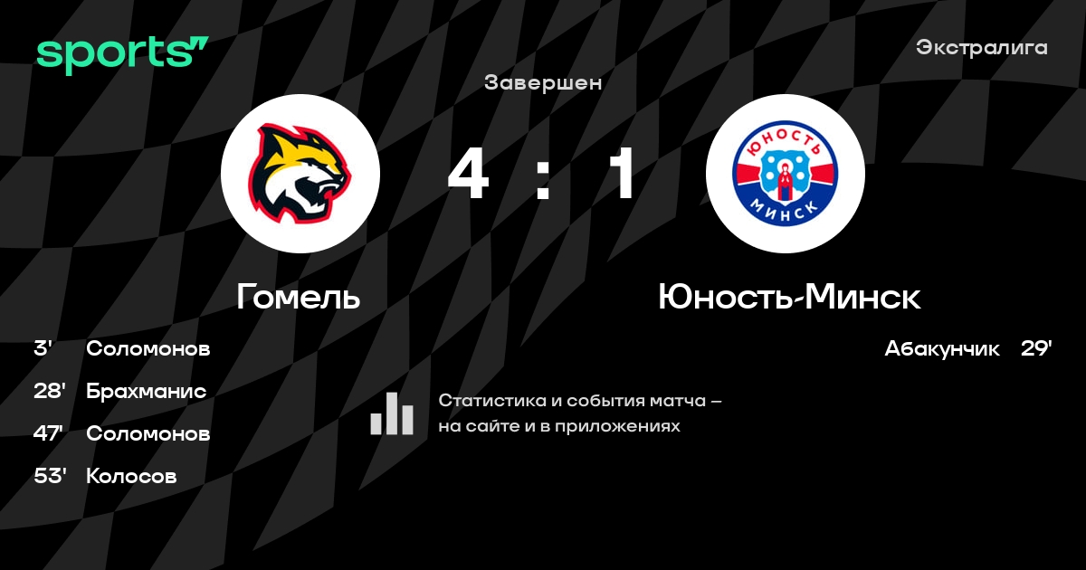 В прошедшем матче в рамках турнира Экстралига состоялась встреча команд Гомель - Юность-Минск в городе Гомель (Беларусь) на стадионе Ледовый дворец Гомель (вместимость - 2700)