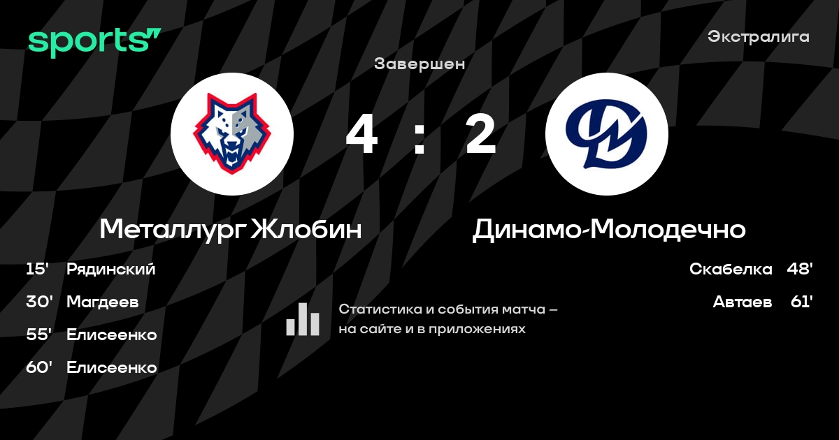 В прошедшем матче в рамках турнира Экстралига состоялась встреча команд Металлург Жлобин - Динамо-Молодечно в городе Жлобин (Беларусь) на стадионе Ледовый дворец Металлург (вместимость - 2018)