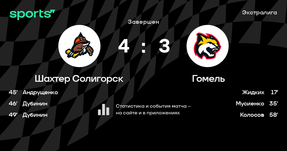 В прошедшем матче в рамках турнира Экстралига состоялась встреча команд Шахтер Солигорск - Гомель в городе Солигорск (Беларусь) на стадионе Ледовый дворец спорта Солигорск (вместимость - 1800)