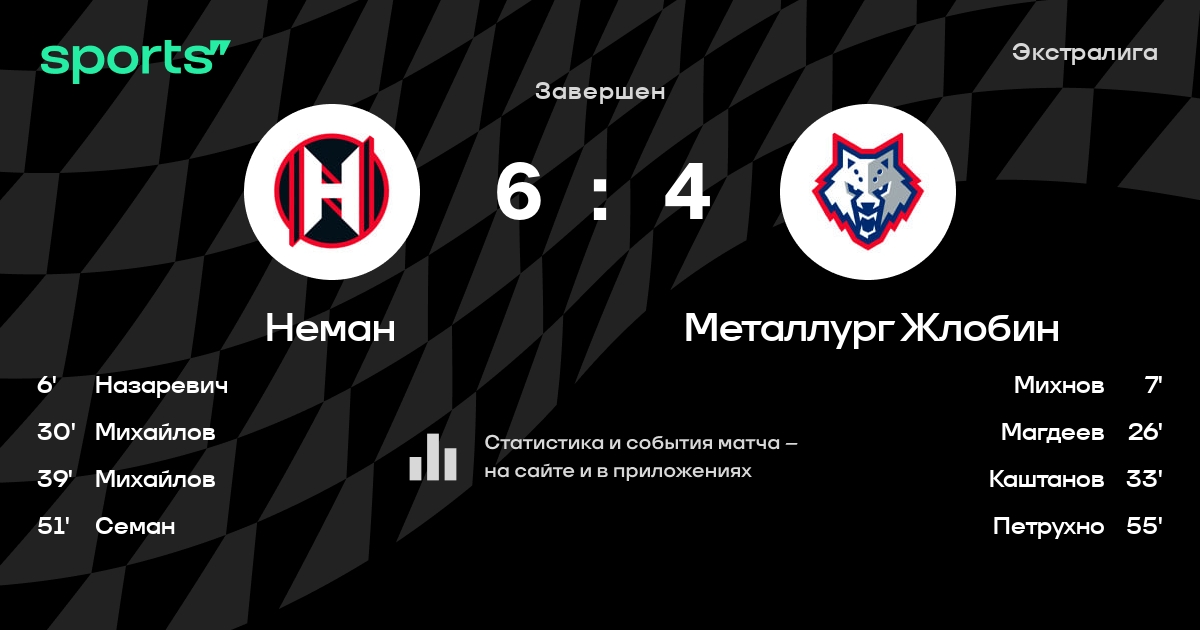 В прошедшем матче в рамках турнира Экстралига состоялась встреча команд Неман - Металлург Жлобин в городе Гродно (Беларусь) на стадионе Ледовый дворец спорта Гродно (вместимость - 2500)