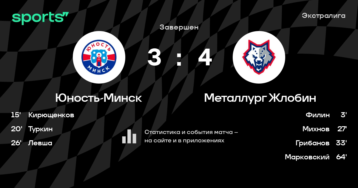 В прошедшем матче в рамках турнира Экстралига состоялась встреча команд Юность-Минск - Металлург Жлобин в городе Minsk на стадионе Yunost Minsk Arena
