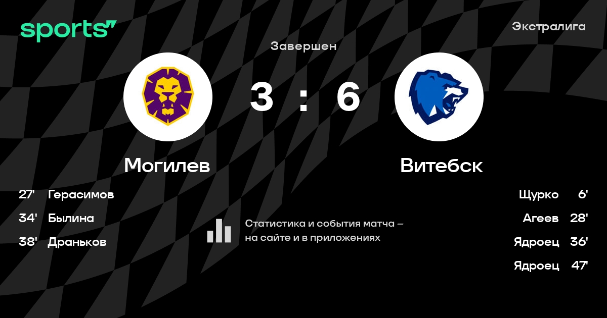 В прошедшем матче в рамках турнира Экстралига состоялась встреча команд Могилев - Витебск в городе Могилев (Беларусь) на стадионе Ледовый дворец спорта Могилев (вместимость - 3048)