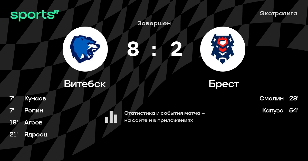 В прошедшем матче в рамках турнира Экстралига состоялась встреча команд Витебск - Брест в городе Витебск (Беларусь) на стадионе Витебский дворец спорта (вместимость - 2000)