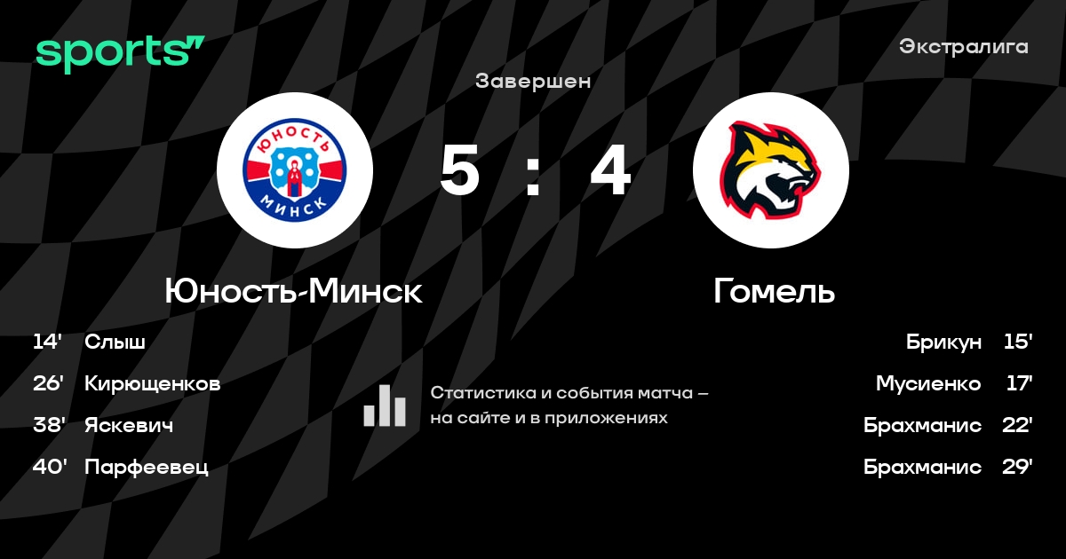 В прошедшем матче в рамках турнира Экстралига состоялась встреча команд Юность-Минск - Гомель в городе Минск (Беларусь) на стадионе Чижовка-Арена (вместимость - 9487)