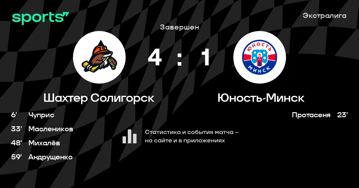 В прошедшем матче в рамках турнира Экстралига состоялась встреча команд Шахтер Солигорск - Юность-Минск в городе Солигорск (Беларусь) на стадионе Ледовый дворец спорта Солигорск (вместимость - 1800)