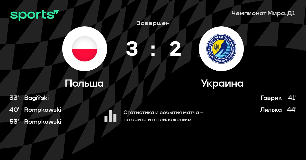В прошедшем матче в рамках турнира Чемпионат Мира. Д1 (Группа A) состоялась встреча команд Польша - Украина в городе на стадионе Tauron Arena Kraków