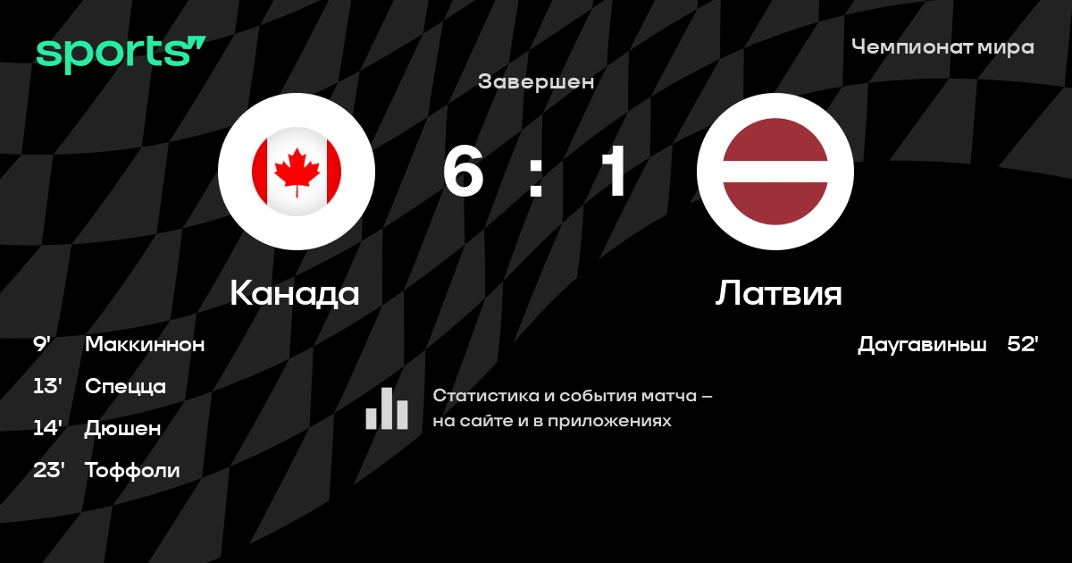 60Все, завершен матч. Канада стартовала с крупной победы над Латвией 6:1.