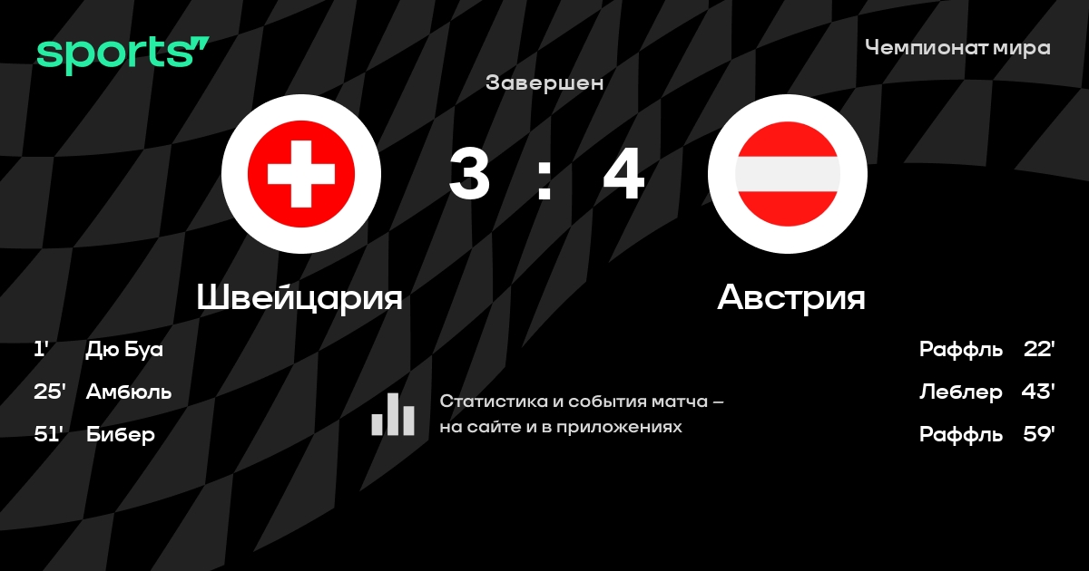 Как прошел матч, смотрите в текстовой трансляции Швейцария - Австрия на Sports.ru