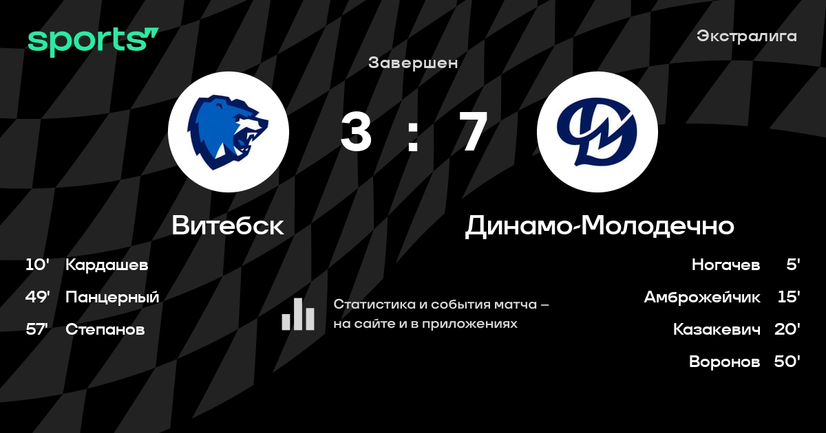 В прошедшем матче в рамках турнира Экстралига состоялась встреча команд Витебск - Динамо-Молодечно в городе Витебск (Беларусь) на стадионе Витебский дворец спорта (вместимость - 2000)
