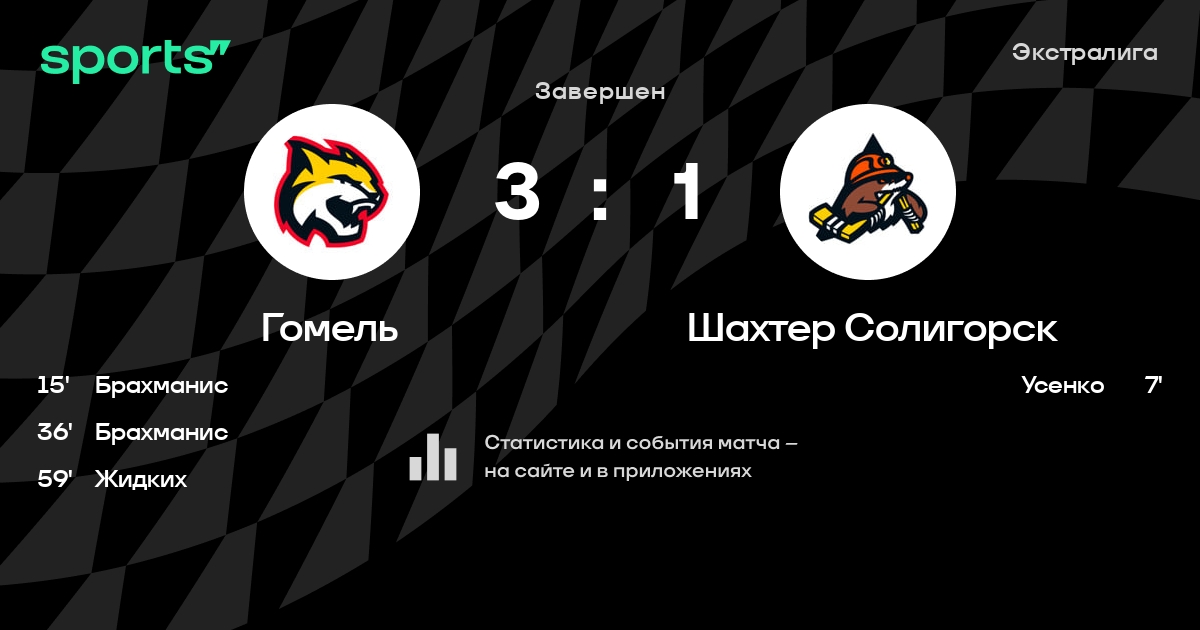 В прошедшем матче в рамках турнира Экстралига состоялась встреча команд Гомель - Шахтер Солигорск в городе Гомель (Беларусь) на стадионе Ледовый дворец Гомель (вместимость - 2700)