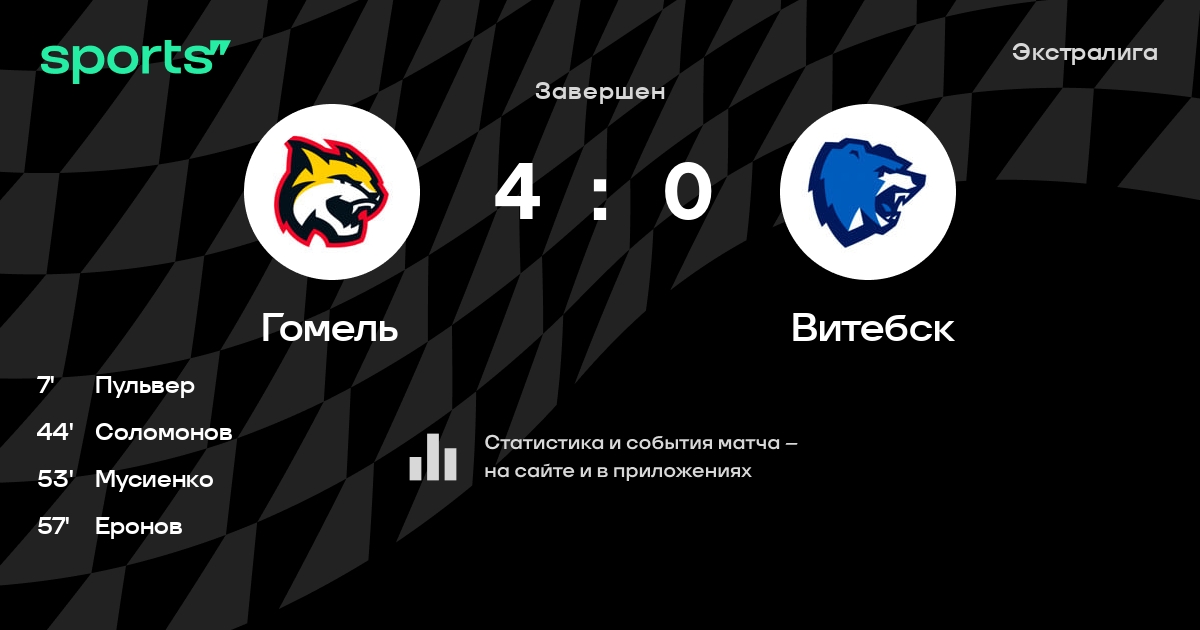 В прошедшем матче в рамках турнира Экстралига состоялась встреча команд Гомель - Витебск в городе Гомель (Беларусь) на стадионе Ледовый дворец Гомель (вместимость - 2700)