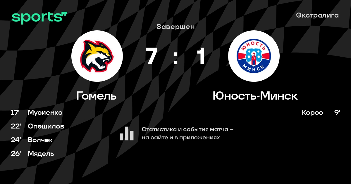 В прошедшем матче в рамках турнира Экстралига состоялась встреча команд Гомель - Юность-Минск в городе Гомель (Беларусь) на стадионе Ледовый дворец Гомель (вместимость - 2700)