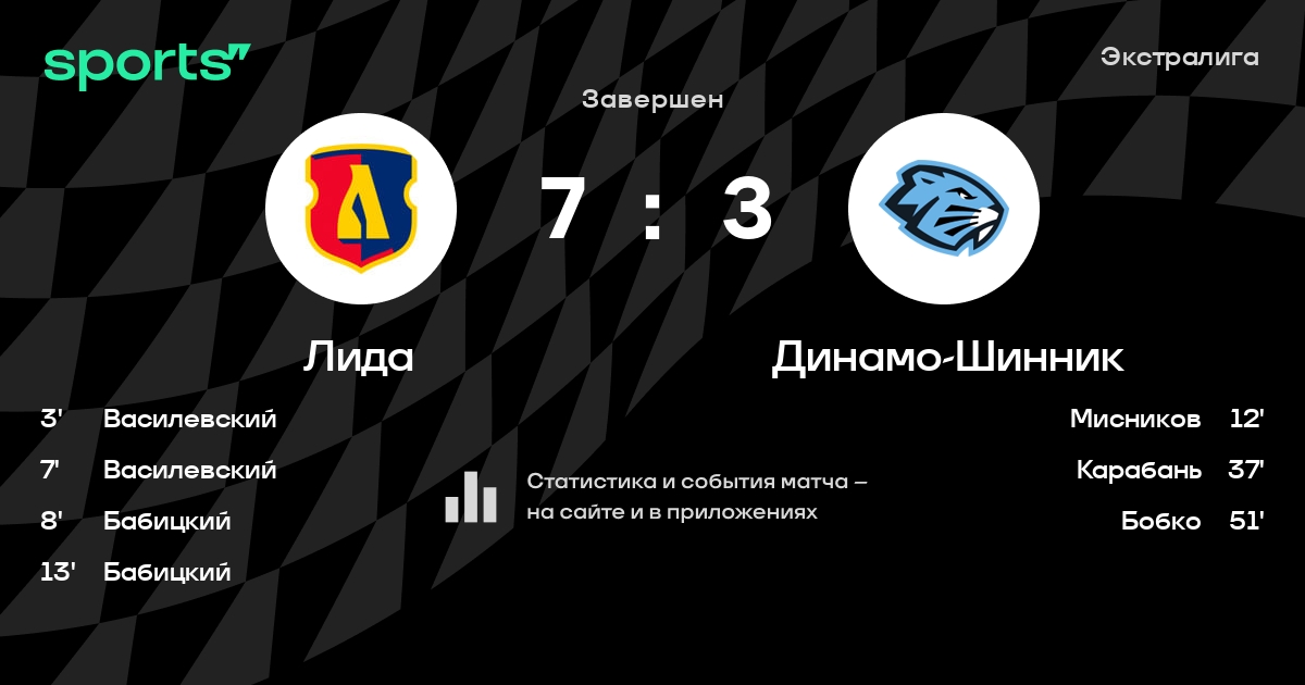 В прошедшем матче в рамках турнира Экстралига состоялась встреча команд Лида - Динамо-Шинник в городе Лида (Беларусь) на стадионе Ледовый дворец спорта Лида (вместимость - 790)