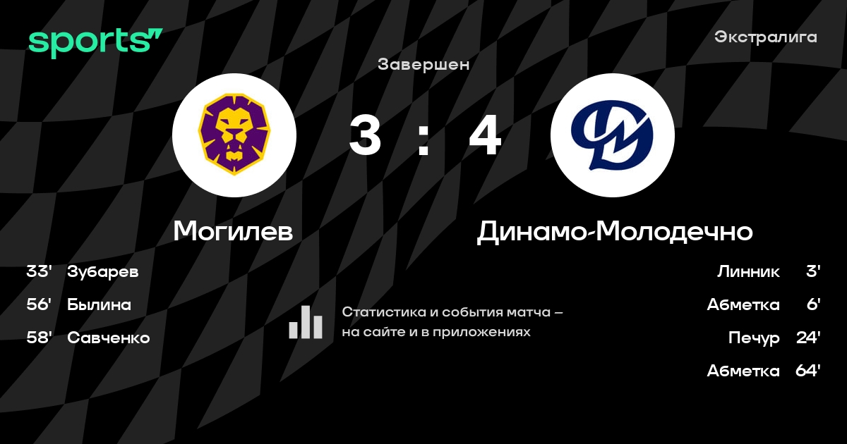 В прошедшем матче в рамках турнира Экстралига состоялась встреча команд Могилев - Динамо-Молодечно в городе Могилев (Беларусь) на стадионе Ледовый дворец спорта Могилев (вместимость - 3048)