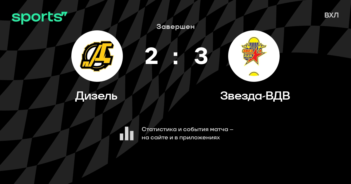 В прошедшем матче в рамках турнира ВХЛ состоялась встреча команд Дизель - Звезда-ВДВ