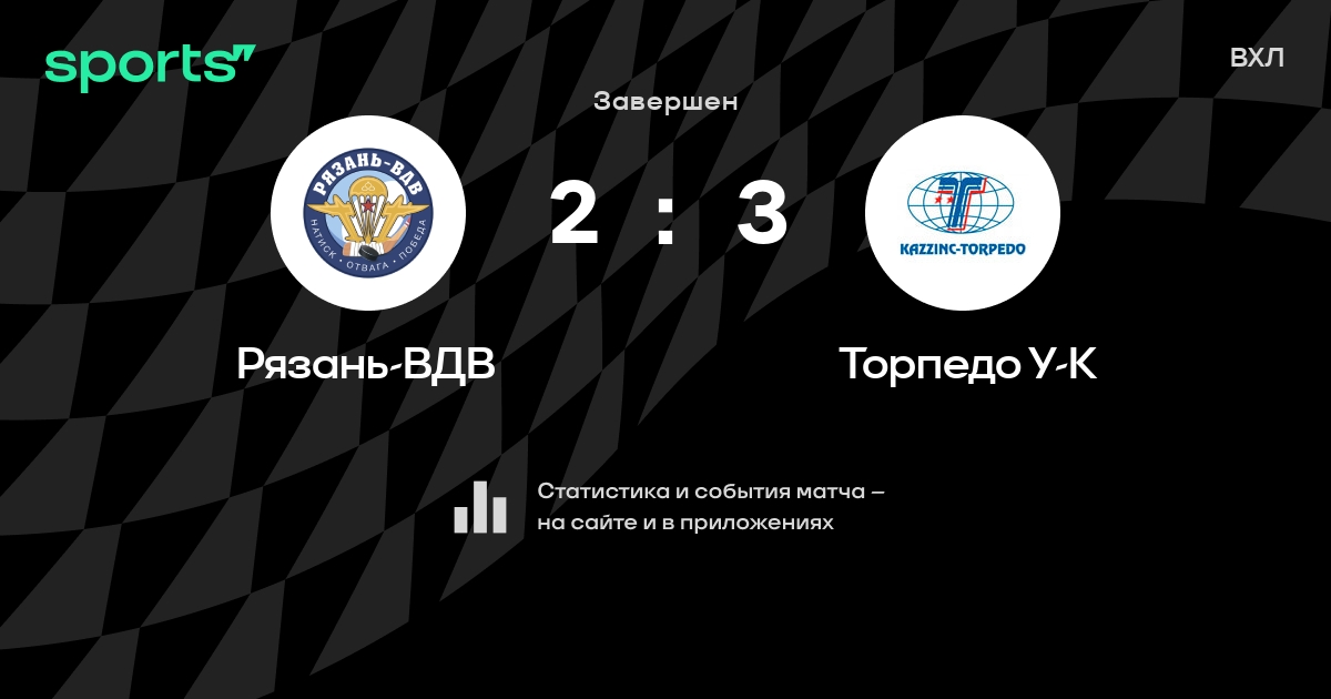 В прошедшем матче в рамках турнира ВХЛ состоялась встреча команд Рязань-ВДВ - Торпедо У-К со счетом 2 : 3.