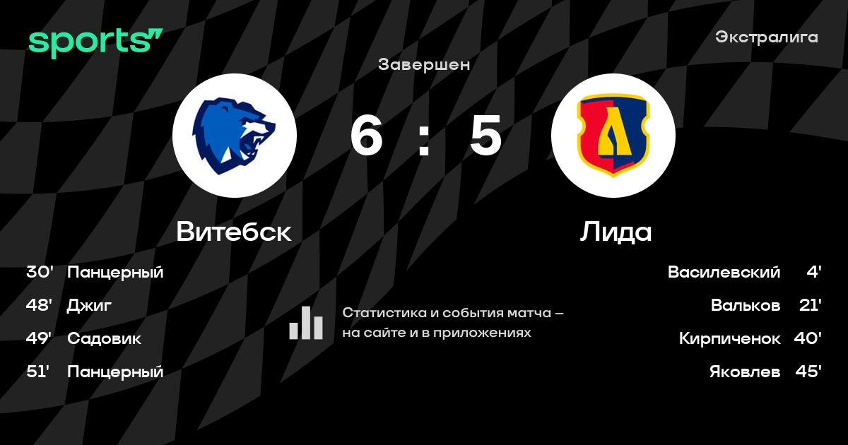 В прошедшем матче в рамках турнира Экстралига состоялась встреча команд Витебск - Лида в городе Витебск (Беларусь) на стадионе Витебский дворец спорта (вместимость - 2000)