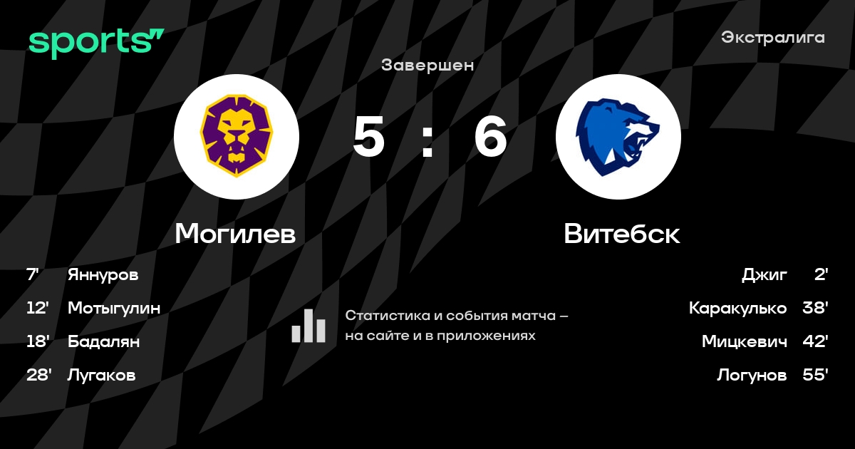 В прошедшем матче в рамках турнира Экстралига состоялась встреча команд Могилев - Витебск в городе Могилев (Беларусь) на стадионе Ледовый дворец спорта Могилев (вместимость - 3048)