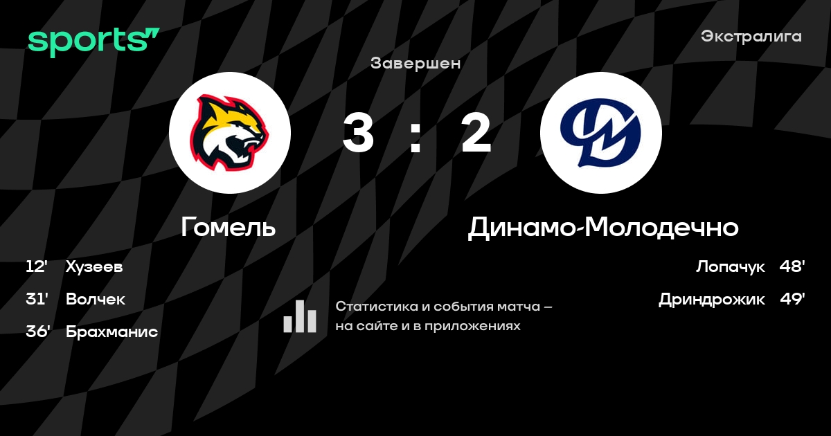 В прошедшем матче в рамках турнира Экстралига состоялась встреча команд Гомель - Динамо-Молодечно в городе Гомель (Беларусь) на стадионе Ледовый дворец Гомель (вместимость - 2700)