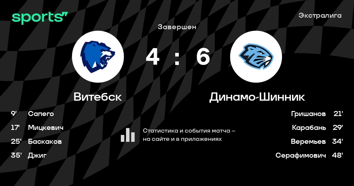 В прошедшем матче в рамках турнира Экстралига состоялась встреча команд Витебск - Динамо-Шинник в городе Витебск (Беларусь) на стадионе Витебский дворец спорта (вместимость - 2000)