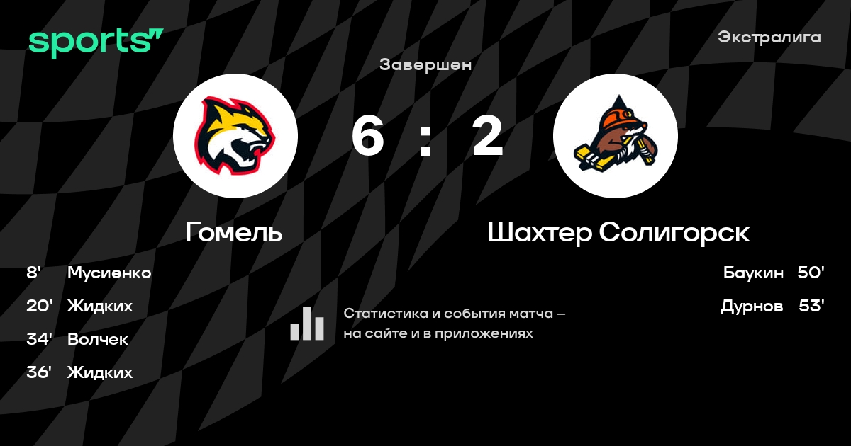 В прошедшем матче в рамках турнира Экстралига состоялась встреча команд Гомель - Шахтер Солигорск в городе Гомель (Беларусь) на стадионе Ледовый дворец Гомель (вместимость - 2700)