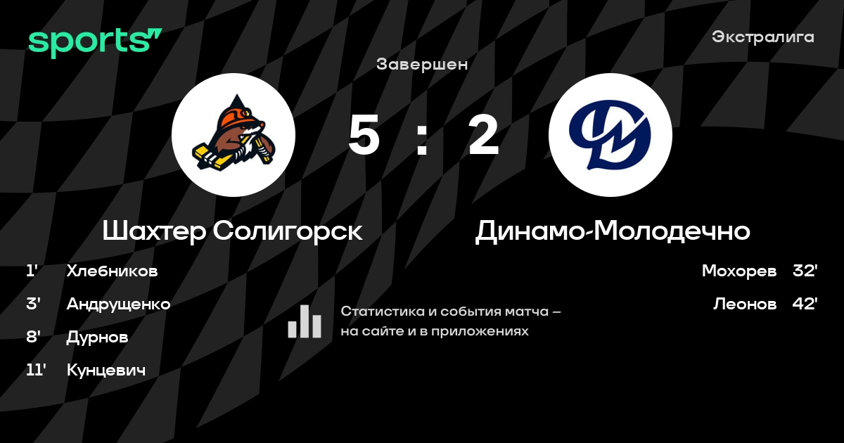 В прошедшем матче в рамках турнира Экстралига состоялась встреча команд Шахтер Солигорск - Динамо-Молодечно в городе Солигорск (Беларусь) на стадионе Ледовый дворец спорта Солигорск (вместимость - 1800)