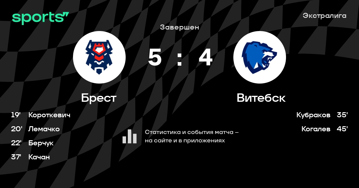 В прошедшем матче в рамках турнира Экстралига состоялась встреча команд Брест - Витебск в городе Брест (Беларусь) на стадионе Ледовый дворец Брест (вместимость - 2000)