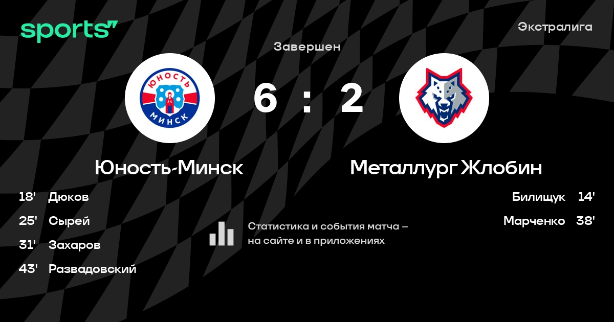 В прошедшем матче в рамках турнира Экстралига состоялась встреча команд Юность-Минск - Металлург Жлобин в городе Минск (Беларусь) на стадионе Чижовка-Арена (вместимость - 9487)