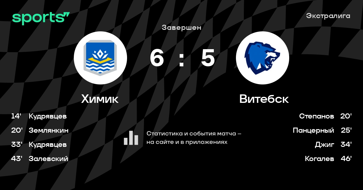 В прошедшем матче в рамках турнира Экстралига состоялась встреча команд Химик - Витебск в городе Новополоцк (Беларусь) на стадионе Дворец культуры и спорта (вместимость - 1200)
