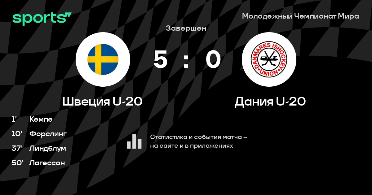 В прошедшем матче в рамках турнира Молодежный Чемпионат Мира (Групповой этап) состоялась встреча команд Швеция U-20 - Дания U-20 в городе Helsinki на стадионе Helsingin jäähalli
