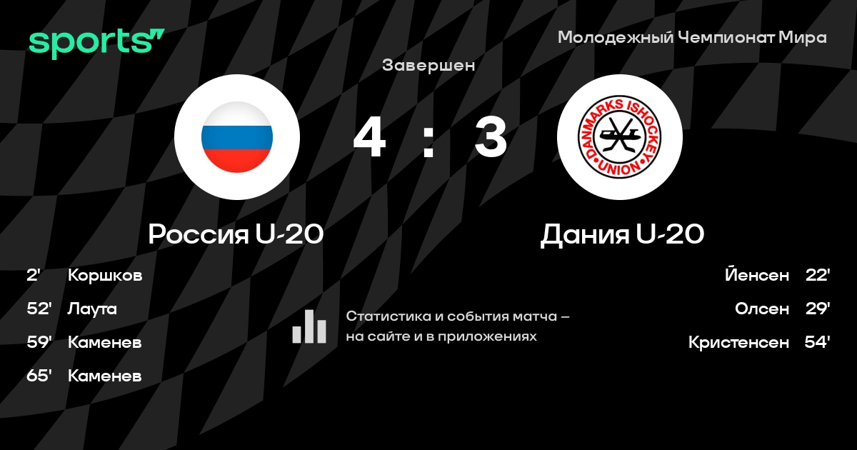 В прошедшем матче в рамках турнира Молодежный Чемпионат Мира (Четвертьфинал) состоялась встреча команд Россия U-20 - Дания U-20 в городе Хельсинки (Финляндия) на стадионе Хартвалл Арена (вместимость - 13506)