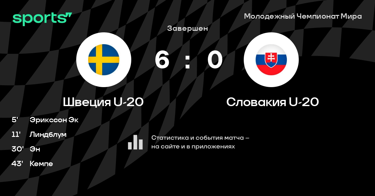 Как прошел матч, смотрите в текстовой трансляции Швеция U-20 - Словакия U-20 на Sports.ru