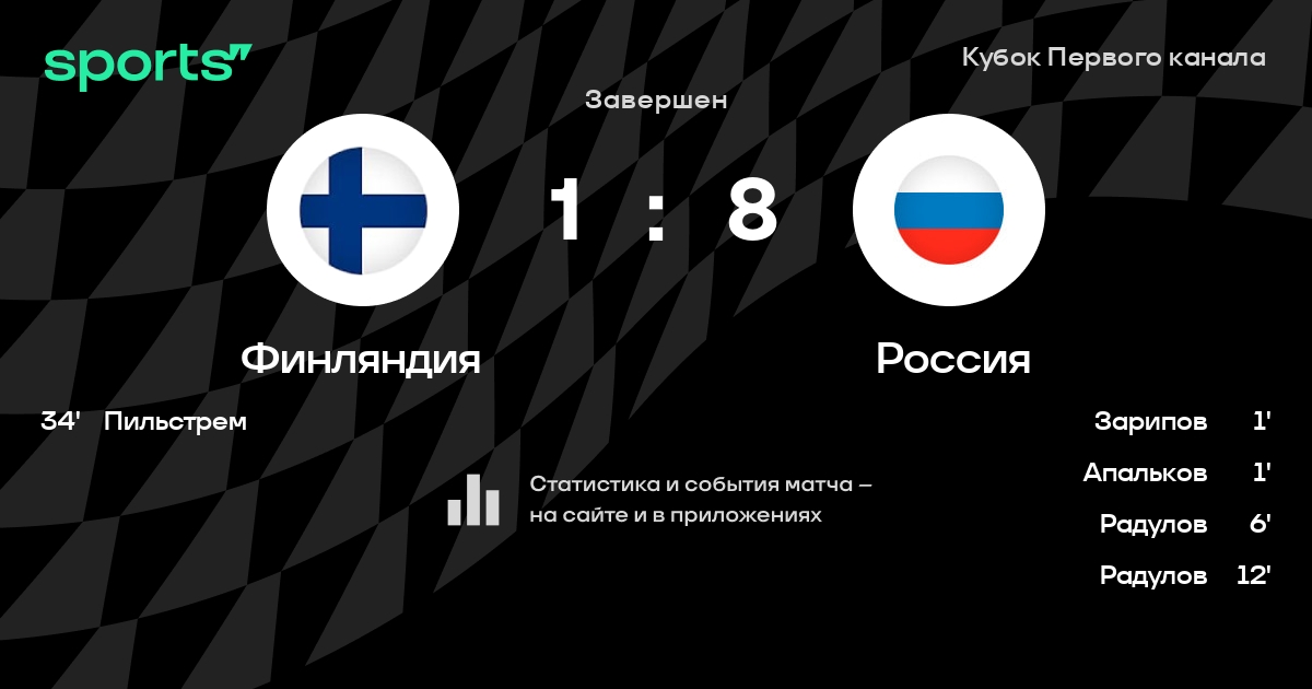 В прошедшем матче в рамках турнира Кубок Первого канала состоялась встреча команд Финляндия - Россия в городе Москва (Россия) на стадионе ЦСКА-Арена (вместимость - 5600)