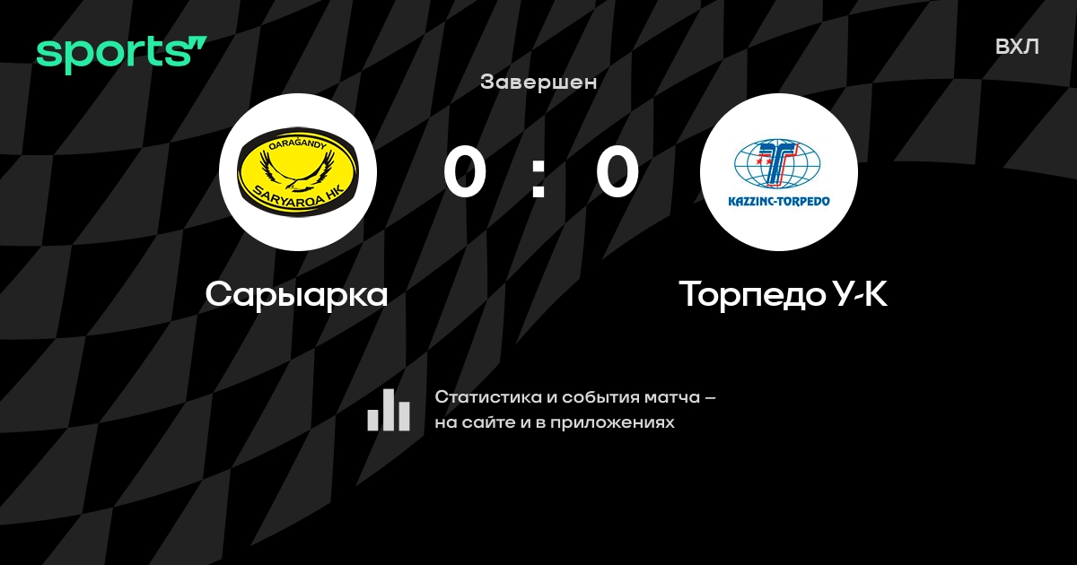 В прошедшем матче в рамках турнира ВХЛ состоялась встреча команд Сарыарка - Торпедо У-К со счетом 0 : 0.