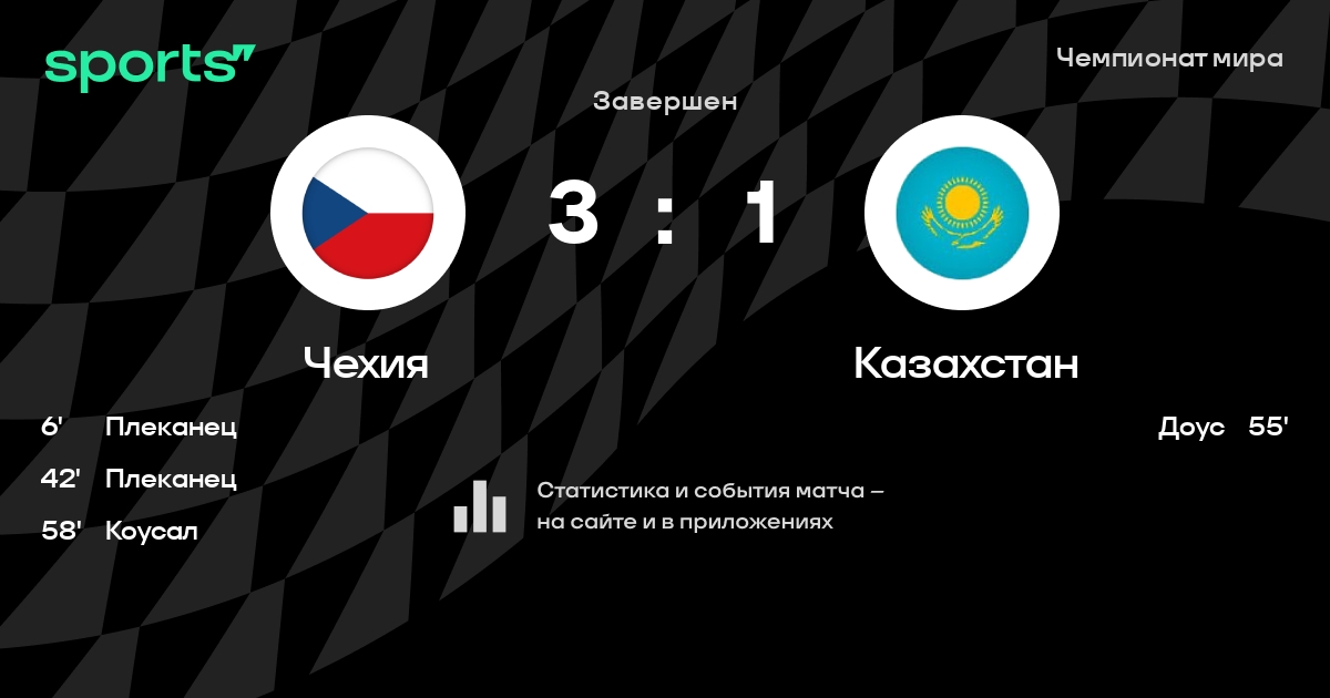 В прошедшем матче в рамках турнира Чемпионат мира (Группа A) состоялась встреча команд Чехия - Казахстан в городе Москва (Россия) на стадионе ЦСКА-Арена (вместимость - 5600)