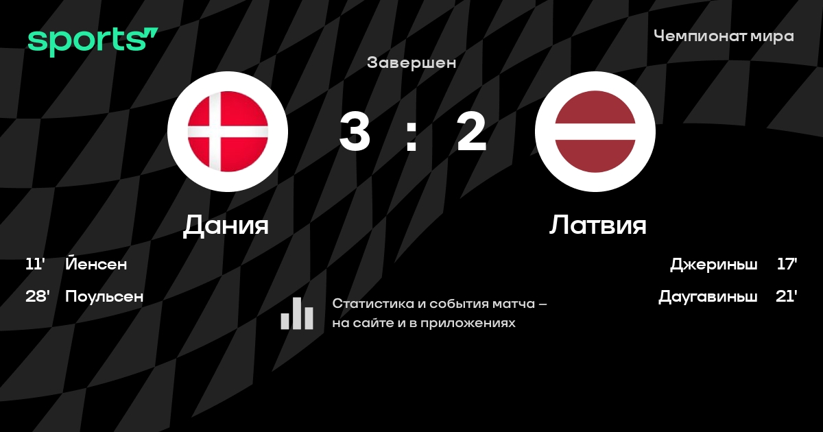 В прошедшем матче в рамках турнира Чемпионат мира (Группа A) состоялась встреча команд Дания - Латвия в городе Москва (Россия) на стадионе ЦСКА-Арена (вместимость - 5600)