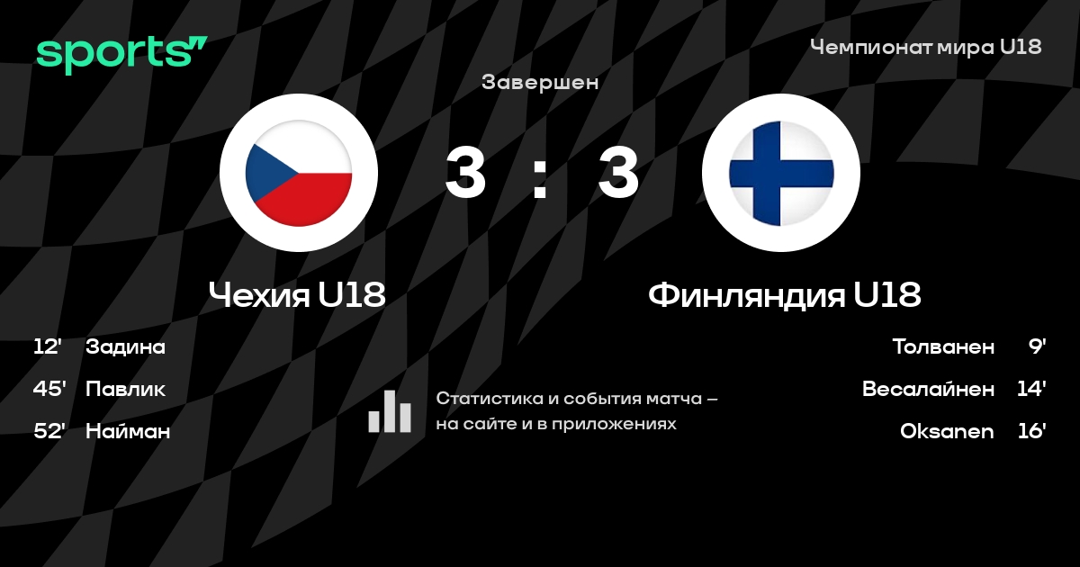 Как прошел матч, смотрите в текстовой трансляции Чехия U18 - Финляндия U18 на Sports.ru