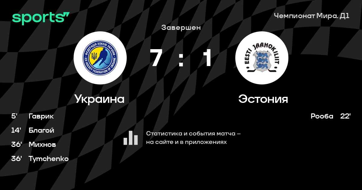 В прошедшем матче в рамках турнира Чемпионат Мира. Д1 (Группа B) состоялась встреча команд Украина - Эстония в городе Загреб (Хорватия) на стадионе Дом Спортова (вместимость - 6400)