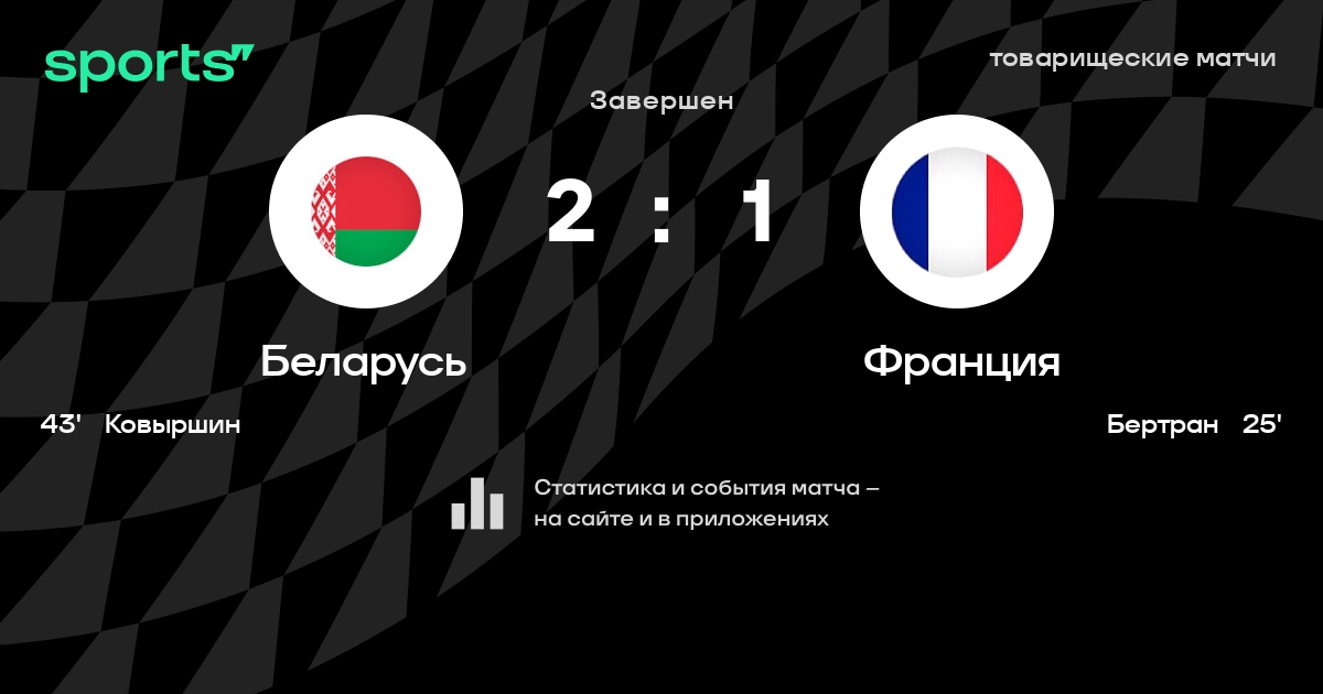 В прошедшем матче в рамках турнира товарищеские матчи состоялась встреча команд Беларусь - Франция